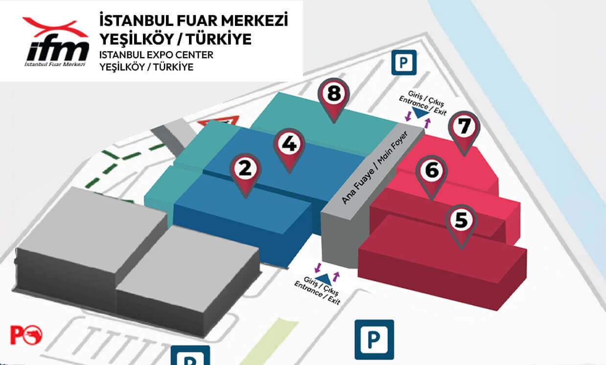 • This major event, combined with Istanbul’s global trade power, takes place in a 60,000 m² area across 6 themed halls categorized by product groups.